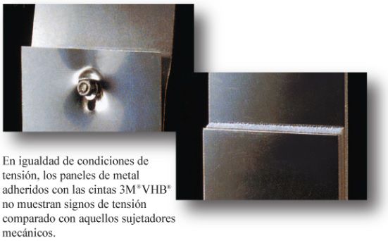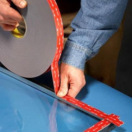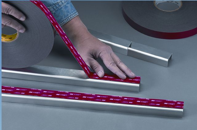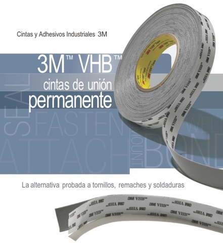La cinta de espuma acrílica adhesiva de altas prestaciones VHB de alta capacidad de resistencia y que sirve de alternativa a tornillos, remaches, soldaduras y otras formas de uniones mecánicas. Mientras un tornillo o soldadura pueden unir dos sustratos en un solo punto, la cinta adhesiva de altas prestaciones pega de forma permanente dos sustratos y distribuye la carga a lo largo de toda la superficie. La unión de los sustratos con una cinta adhesiva de alta resistencia crea una “soldadura” prácticamente indestructible.